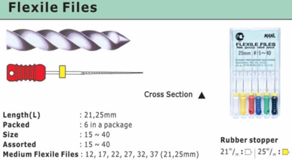 Ručné pilníčky Flexile z nehrdzavejúcej ocele majú trojuholníkový tvar, ktorý znižuje prierezový dvojrozmerný moment, aby sa zabezpečila lepšia flexibilita ako pri pilníčkoch s pravouhlým prierezom.
